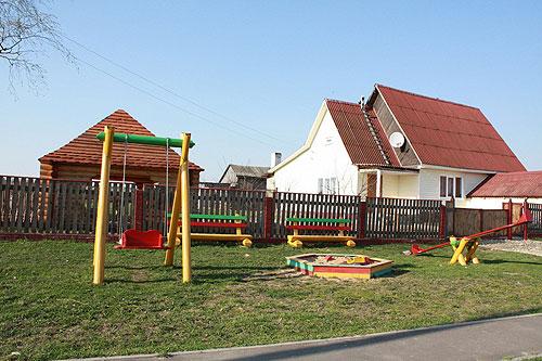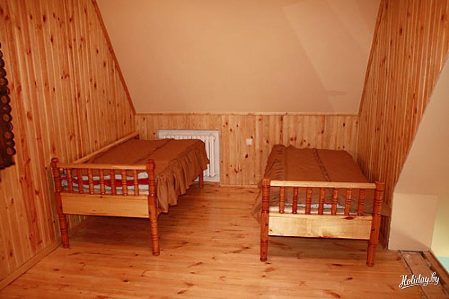 Оригинальные постройки привлекают любителей белорусской архитектуры. В доме два отдельных входа для удобства гостей. На втором этаже в одной комнате могут разместиться два человека, в другой – три. Тут удобно будут себя чувствовать как рыбаки, так и охотники. Рядом в лесу много грибных и рыбных мест. Дети и взрослые будут рады прокатиться на лошади, покормить домашних животных.