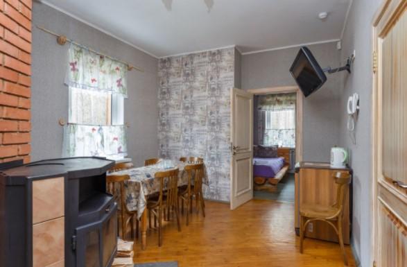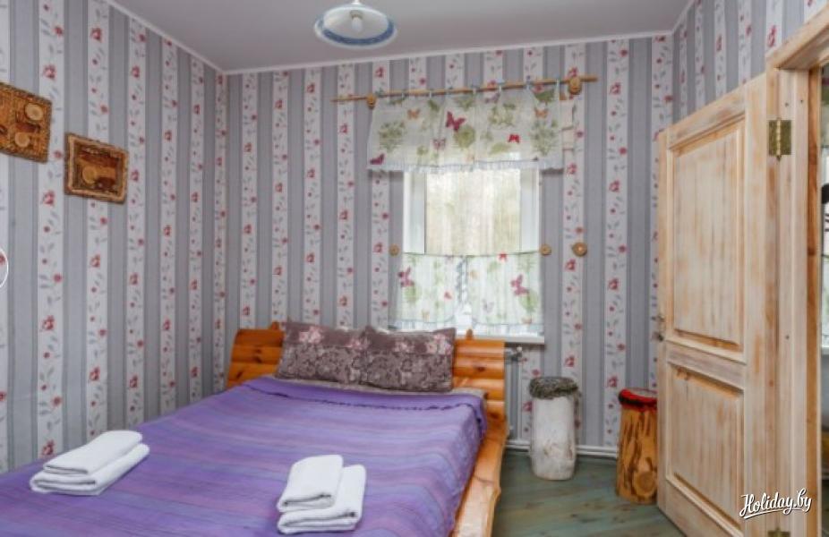 Коттедж на сутки «Невада» в загородном комплексе «Ранчо» недалеко Гомеля готов принять семью или компанию до 7 человек. Дом в аренду имеет 3 спальные комнаты с необычными деревянными односпальными и двуспальными кроватями, гостиную с обеденной зоной и камином, санузел с душевой. Есть возможность оборудовать доп.спальное место. Полагается набор чистых полотенец. Из бытовой техники есть телевизор, холодильник, фен, чайник.