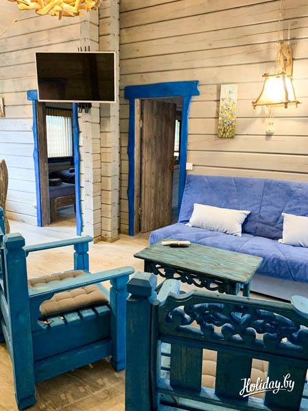 Деревянный дом из бруса «Озерный» для большой компании находится на отдельной огороженной территории с парковкой. Включает в себя 3 отдельные спальни, гостиную с кухонной зоной, два санузла, две террасы с зоной барбекю. «Озерный» оснащен камином, 4-мя кондиционерами, панорамными окнами, теплым полом, мебелью ручной работы. В доме имеется холодильник, микроволновая печь, посуда, чайник.