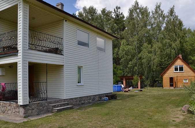 Дом отлично подойдет для проживания до 3-х семей. Дом двухуровневый с кухней, гостиной и спальными комнатами. Кухня оснащена всей нужной техникой и посудой. В целом дом оснащен: телевизором, холодильником, газом, душевой кабиной. В доме есть Wi-Fi и охранная сигнализация. В усадьбе "Пантелейки точка бай" есть баня.