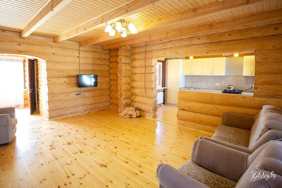 Усадьба «Полевая» – это просторный современный дом, построенный из экологических материалов, рассчитан на долгосрочное пребывание до 8 гостей. Дом оснащен всем необходимым для комфортного размещения, что отлично подойдет и для семейного отдыха с детьми: имеется 3 уютных спальни, 1 гостиная, современная кухня с плитой и холодильником, совмещенный санузел с душевой и стиральной машиной, бесплатный интернет и телевидение. На территории усадьбы есть площадка с мангалом, детский батут и качели, а на открытом воздухе под крышей дома предусмотрен для гостей столик с лавочками, куда при желании можно переместиться на трапезу.