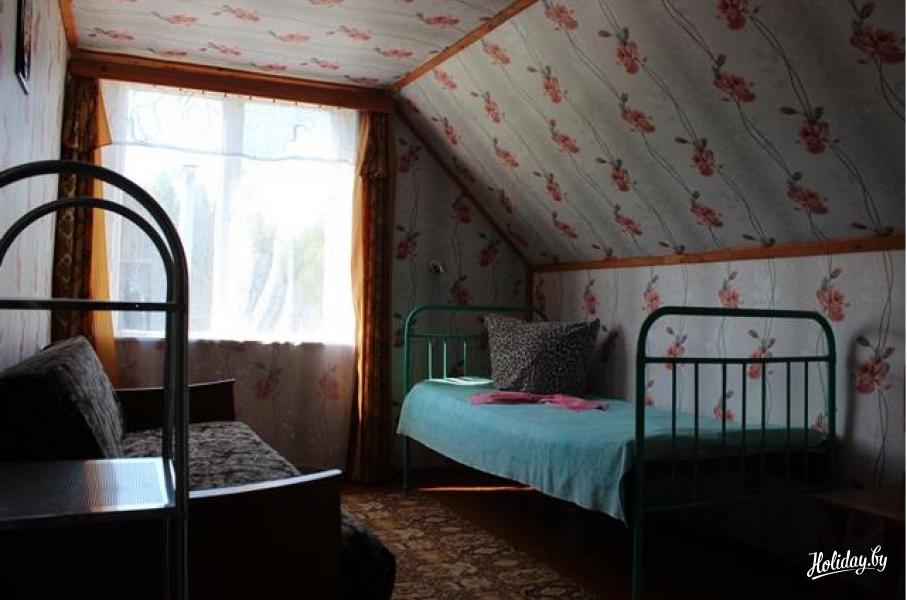 На участке размещен дом с двумя отдельными входами. В доме расположено 7 жилых комнат, 2 санузла и 2 кухни. Арендовать можно как всю усадьбу, так и ее половину. Для комфорта гостей имеется душ (горячая и холодная вода), паровое отопление, телевизор, холодильник, плита, микроволновая печь, посуда и постельное белье.