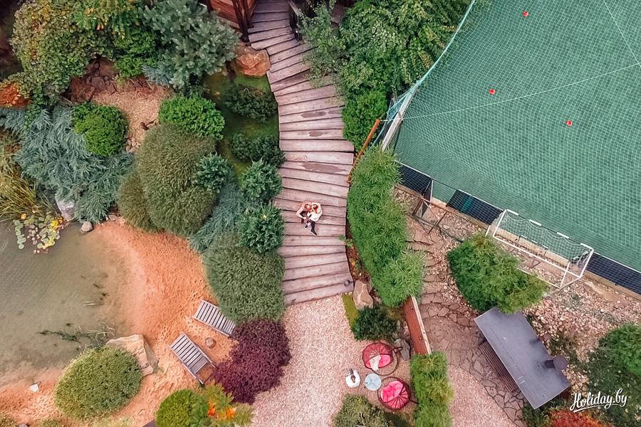 Ландшафт на территории это сказка, чего только стоит искусственный пруд и маленький водопад с ручьём, который создаёт незабываемое ощущение присутствия в горной местности.