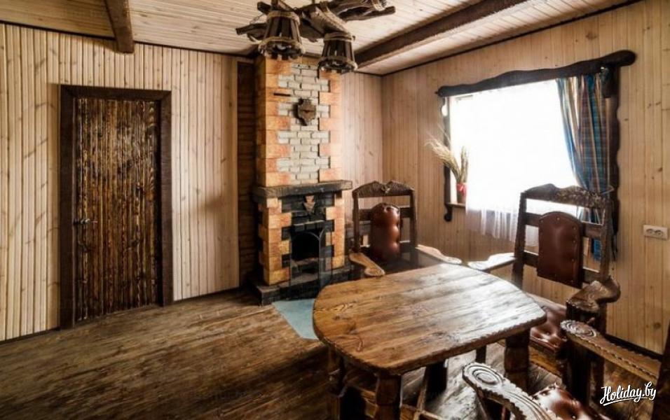 Домик №3 «Шале» подойдет для проживания 4-х гостей. Это традиционное швейцарское шале с альпийскими сувенирами и охотничьими трофеями. В доме есть уютная гостиная с камином, в которой можно согреться вечером. Внешне дом выглядит довольно по-средневековому, однако он оборудован всеми современными удобствами.