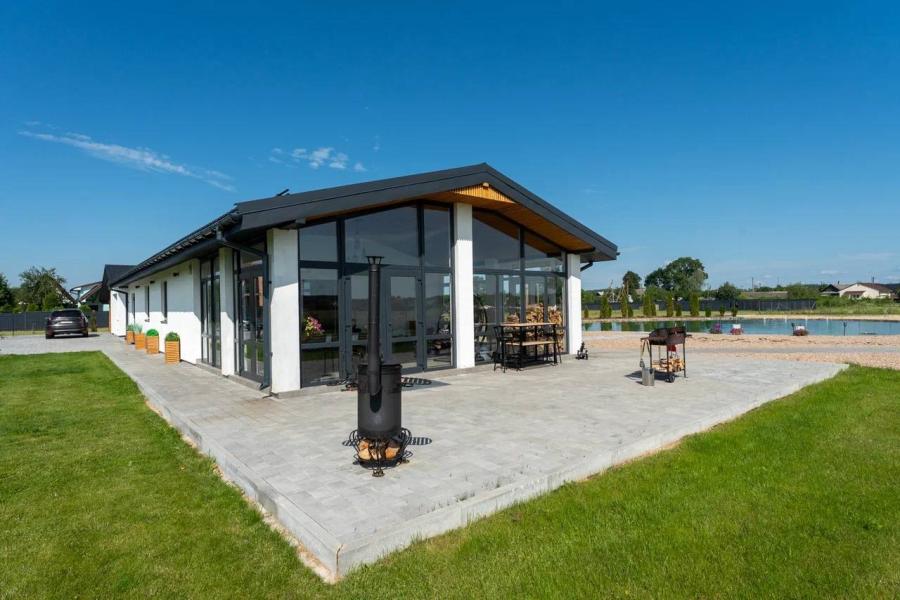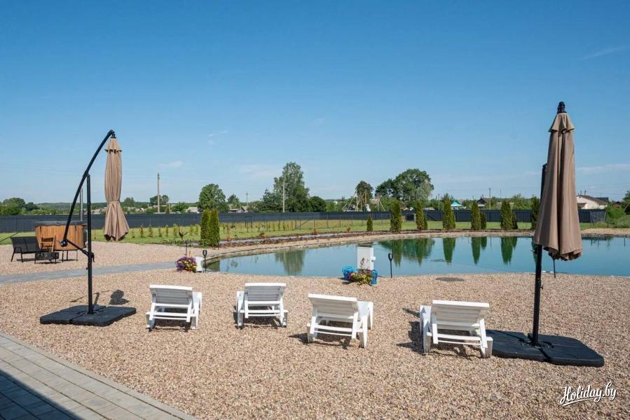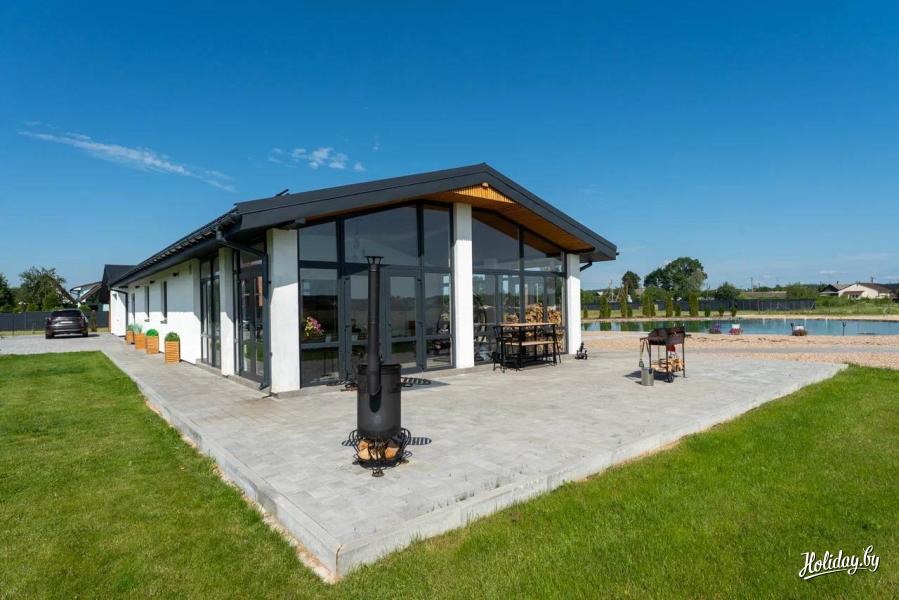 Территория большая, просторная, всё обустроено с умом. В озере можно купаться, есть пологий заход и для прыжков. Вход в баню из дома и с улицы, там шезлонги, качели, купель, большое кострище на вечер, красивый закат.... Лепота :)