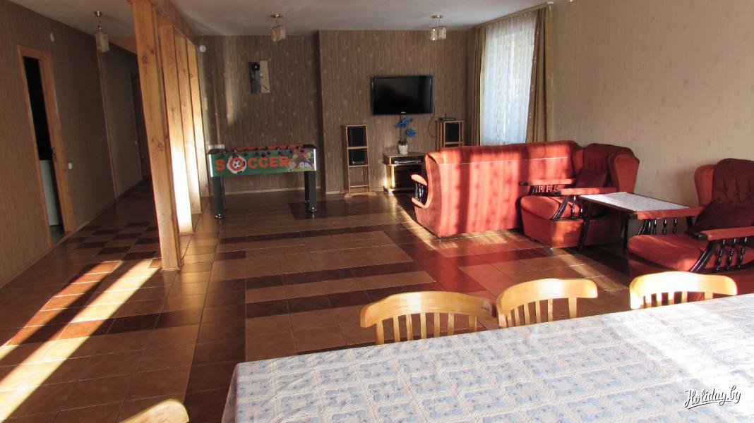 Ночевали в 7 км от Минска в усадьбе «Сябрына», которую нашли по Интернету. Что называется «дешево, просто, но достойно». Количество туалетов и прочие характеристики указаны в рекламе, поэтому останавливаться на этом незачем. Отмечу только, что все функционирует исправно и нареканий не вызывает. Очень уютно, все чистенько, красиво, по европейскому стандарту, хорошие обои, на полу паркетная доска. Просторная столовая (она же гостиная) свободно вмещала всех нас. Совмещенная с кухней, на которой тоже все-все нужное для жизни есть. Было место и посидеть-поболтать, и песни попеть, и поиграть, и потанцевать. Обстановка домашняя, а по дому принято ходить в своих любимых тапочках. Из столовой выход в садик, где есть навес и оборудованное место для приготовления и поглощения шашлыков. Вокруг красота! Хозяева – простые добродушные, гостеприимные люди. Нам было уютно, как у родных. До Минска – рукой подать, автобусы и маршрутки ходят исправно. Качество дорог вполне сносное, по крайней мере, лучше, чем в Подмосковье. Единственная неожиданно плохая дорога между соседними деревнями Атолино-Самохваловичи (Н9033). Это несколько южнее деревни Прилуки, если выезжать на шоссе М1 (Е30). На Google там желтым цветом дрога показана (навигатор туда отправляет), а на деле – грунтовка, причем, в виде «стиральной доски», но, похоже, скоро и ее заасфальтируют, работы начали. А пока лучше объезжать. Так что, если есть желание посмотреть славный город Минск, его красивые окрестности и саму Белоруссию, бронируйте «Сябрыну» и удачного отдыха!