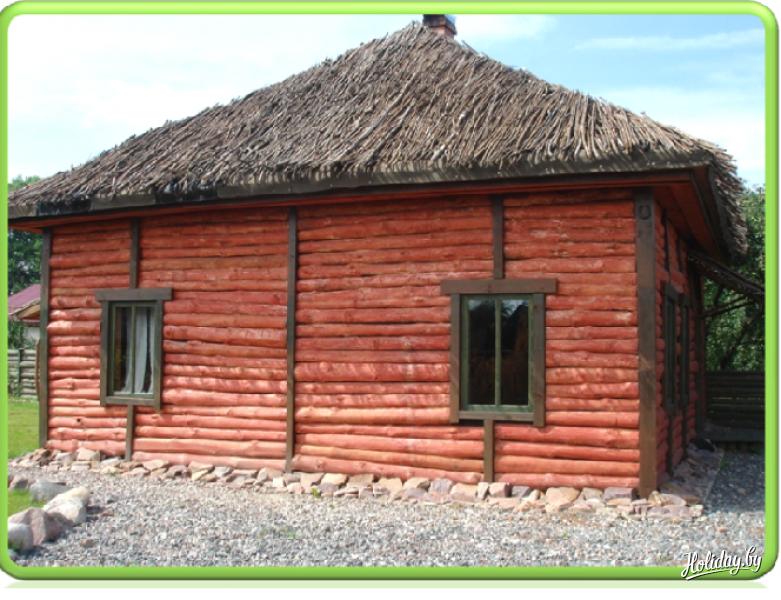 Взять в аренду эту усадьбу в Гомельской области одновременно могут до 6 человек. Камерная атмосфера дома поможет расслабиться и отрешиться от каждодневных забот. Можно посидеть у пруда, позаниматься зарядкой на спортивной площадке. Для малышей – качели и целое пространство для игр.