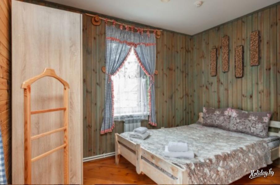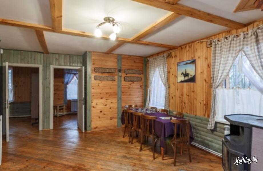 Коттедж на сутки «Техас» в загородном комплексе «Ранчо» в 20 км от Гомеля вместит компанию до 8 человек. Дом в аренду имеет 4 спальные комнаты с двуспальными и односпальными кроватями, гостиную с обеденной зоной на 8 гостей и камином, санузел с душевой и полотенцами. Есть возможность оборудовать доп.спальное место. Из бытовой техники в доме есть телевизор, холодильник, фен, чайник, микроволновка.