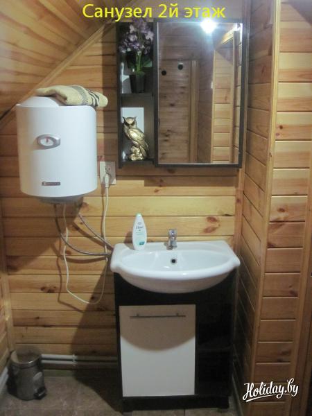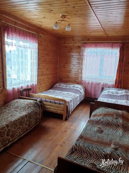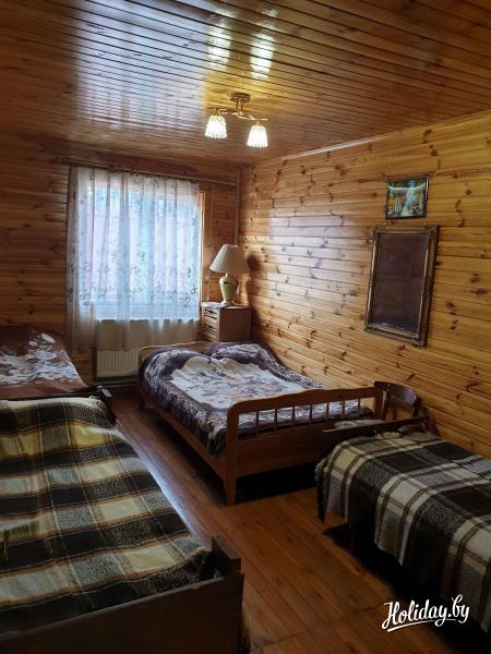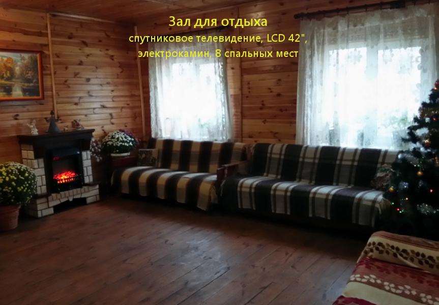 Коттедж рядом с Минском имеет 7 комнат, к услугам гостей 30 спальных мест. Дом отлично оборудован: кухня с бытовой техникой (холодильник, плита, духовка, микроволновка, чайник, посуда, раковина с горячей водой), два санузла с горячей водой и ванной, стиральная машина, утюг, два телевизора, спутниковое TV, современная акустическая система, WiFi, караоке, диско-шар со светомузыкой. Для развлекательных мероприятий в коттедже предусмотрен банкетный зал на 45 персон. В большом зале для отдыха и танцев для Вас световой шар, электрокамин, два телевизора.