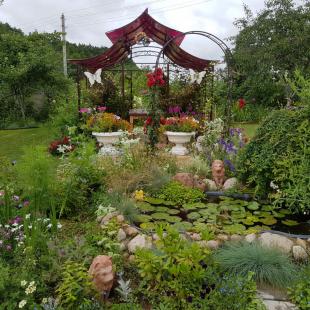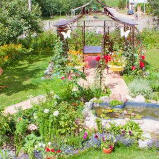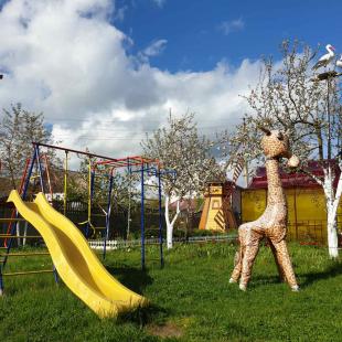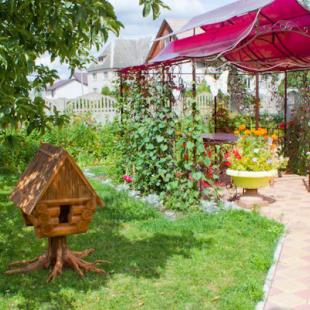 В коттедже "Теремок в Ельнице" (25 соток) расположены: просторный двухэтажный дом из натурального дерева, гостевой домик-баня, крытая беседка (50 кв.м) для банкетов, детская площадка (100 кв.м), большой газон и цветники.