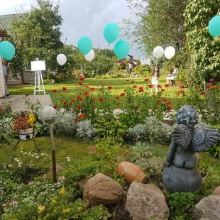 Чудесное место как для семейного отдыха,так и для праздничных мероприятий/корпоративов.Большая ухоженная территория,много зелени,есть небольшой фонтан и детская площадка.Много красивых мест для памятных фотографий,для свадебных фотосессий предусмотрены специальные фотозоны.Рядом с домом-небольшой лес и речка.Сам дом очень просторный, наверху несколько спален,где могут разместиться несколько семей или большая компания.На первом этаже два больших зала,где можно посидеть за праздничным столом и потанцевать в своё удовольствие.Есть крытая беседка и мангал на свежем воздухе.Небольшая,но очень уютная баня,для тех,кто любит расслабиться и погреться.Везде чистенько,по территории приятно гулять.Хозяева очень внимательные,приятные и отзывчивые люди,всегда на связи,если нужно что-то уточнить.Отдыхали небольшой компанией,всё очень понравилось,и с удовольствием приедем ещё не один раз.