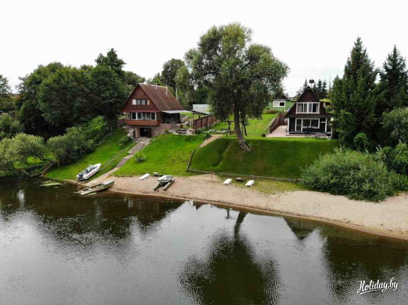 Всего в усадьбе три дома. Это современные коттеджи, оснащенные всем необходимым, а также старинный домик в деревенском стиле. Дома рассчитаны на 10, 7 и 6 человек. Коттеджи на 10 и 7 человек оснащены оборудованной бытовой техникой и посудой, кухней, туалетом на каждом этаже, душем, стиральной машиной. На первом этаже домов находятся гостиная с панорамным видом на реку, где приятно проводить время с семьей или отдыхать в уединении. Вид на Березину открывается также и с окон двух спален, располагающихся на втором этаже.