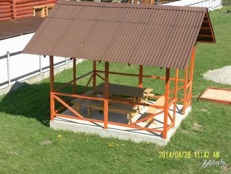 На территории усадьбы "У Петра на даче" расположена беседка для посиделок с друзьями и отдыха в теплое время года. Рядом расположен мангал (дрова включены в стоимость проживания). Для маленьких гостей имеется песочница.