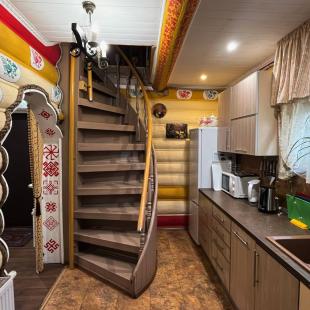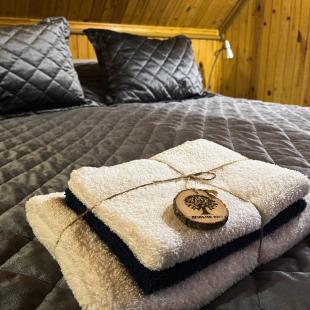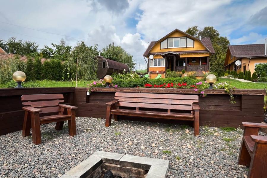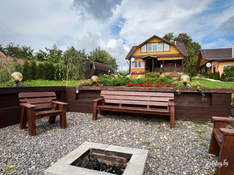 В гостевом деревянном двухэтажном доме есть все удобства для комфортного отдыха в любую пору года. На первом этаже находится кухня с необходимой техникой (холодильником, СВЧ, плитой, ПММ), санузел со стиральной машиной и просторной душевой, гостиная-столовая с камином, диваном и TV зоной. На втором этаже расположен большой холл, из окон которого открывается вид на величественное озеро Черствяты. В доме есть две спальни, в каждой из которых есть двухместная кровать и раскладной диван. Атмосфера дома располагает к глубокому расслаблению, теплым беседам, отличному сну и восстановлению сил.