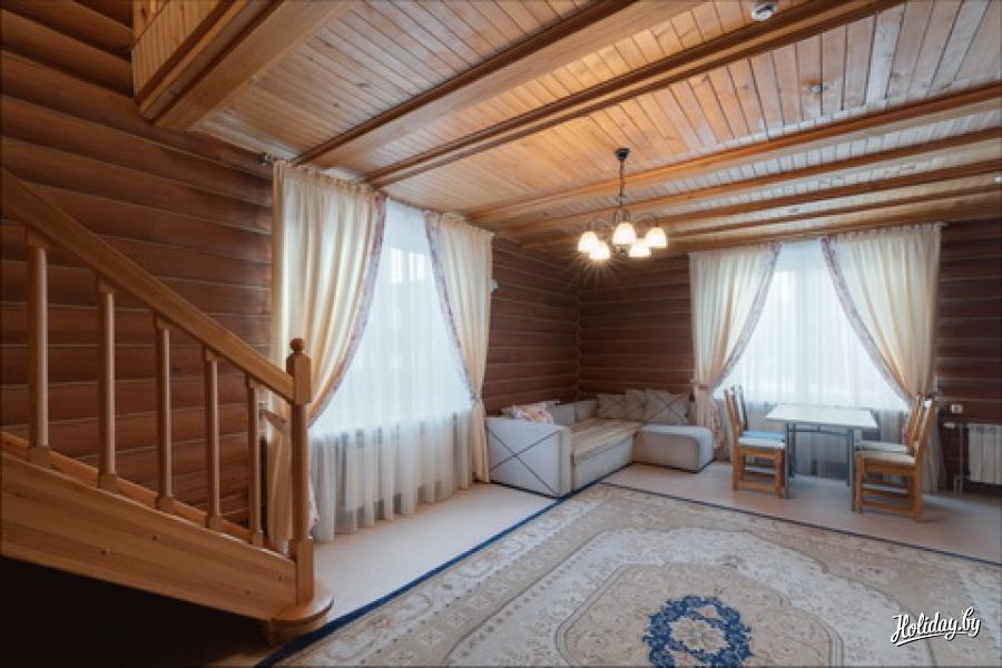 Комфортабельная усадьба для отдыха гостей в загородном комплексе «Силичи». В домике сможет расположиться семья из двух человек, есть возможность организовать два дополнительных спальных места. В доме есть обеденная зона, мини-кухня с холодильником, чайником. За дополнительную плату можно арендовать микроволновую печь. На втором этаже коттеджа расположена спальная комната с кондиционером.