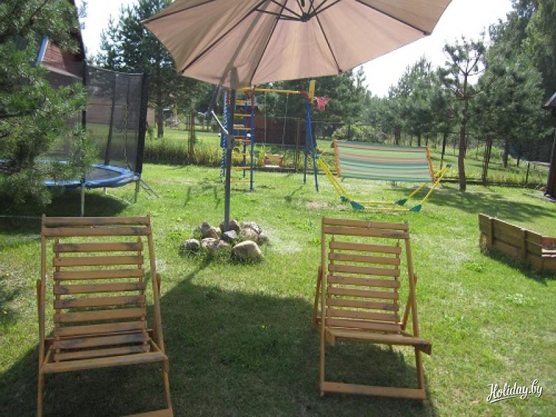 Участок агроусадьбы «Озерная жемчужина Струсто» на Браславах облагорожен и радует глаз: тут растут ароматные сосны и хвойники, благоухают красивые клумбы с цветами, между гостевыми домами оборудована детская площадка (спортивный комплекс, батут, гамак, песочница), установлены лавочки, большие качели для взрослых, шезлонги, солнечный зонт, гамаки, столы со скамейками, есть большая площадка для подвижных игр. Для приготовления шашлыка на природе имеются мангал с шампурами, тренога с котлом для ухи. На территории усадьбы есть крытый шатер с деревянным столом и скамьями, а также беседка. Здесь же можно проводить свободное время за дружными посиделками, играя в настольные игры, или наслаждаться вечерней трапезой на лоне природы.