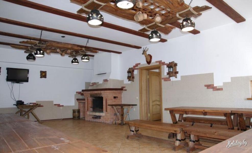 В двухуровневом доме есть 9 спальных мест, кухня, банкетный зал на 50 человек. Также имеется три отдельных деревянных домика (на 2, 2 и 3 спальных места) с туалетом, душем. В отдельном банкетном домике сможет расположиться компания до 20 человек. Здесь можно воспользоваться мини-кухней, санузлом.