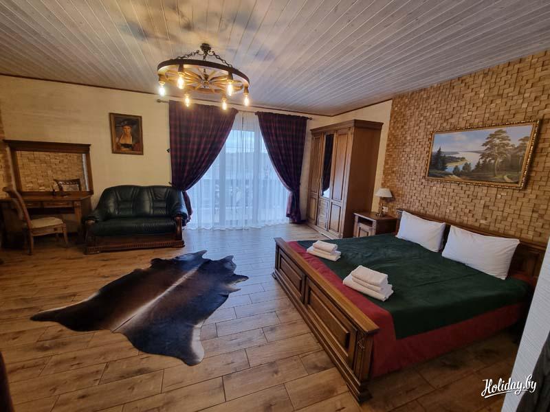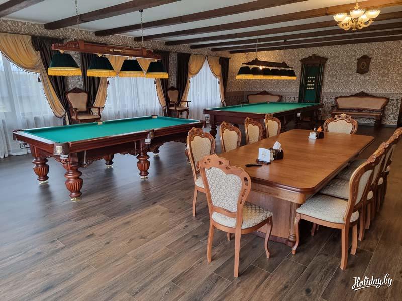 В ресторане подаются блюда белорусской, украинской и европейской кухни а также блюда из дичи. Гости могут воспользоваться принадлежностями для барбекю на территории, а так же самостоятельно готовить на общей кухне. Стойка регистрации работает по плавающему графику. Открыт прокат кояк,лодок,лодок с мотором,квадроциклов,велосипедов.