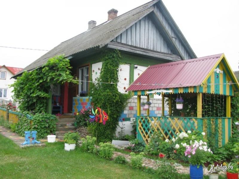 Арендовать эту усадьбу в Могилевской области захотят те, кто предпочитает сельский антураж. В двух комнатах с печным отоплением есть все необходимое для отдыха. На участке доме построена деревянная беседка, в летнее время надувной бассейн наполняют водой.
