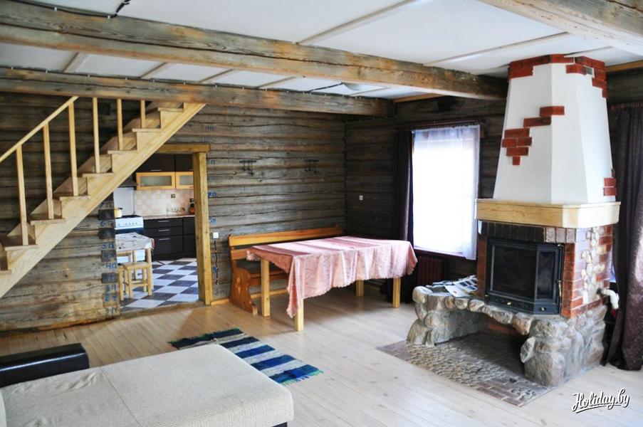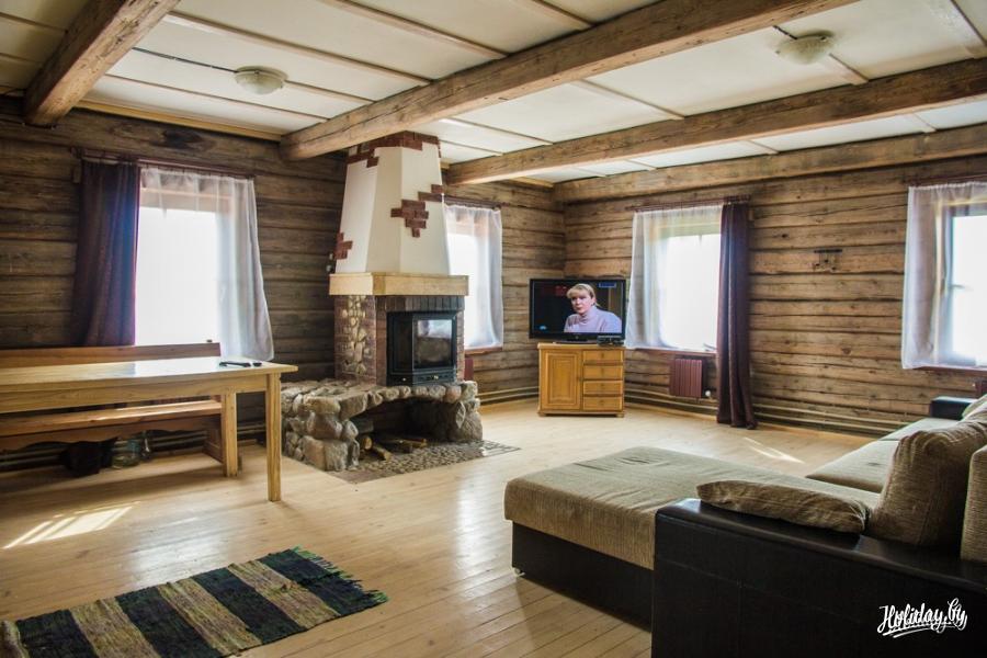 Отдельного внимания заслуживает деревянный дом в аренду, он стоит прямо на берегу озера. В комнатах комфортно может разместиться компания до 7 человек. В доме три комнаты, оборудованная самой необходимой бытовой техникой кухня, гостиная с камином, санузел, который включает в себя душ и туалет. Вода в усадьбе добывается из собственной скважины.