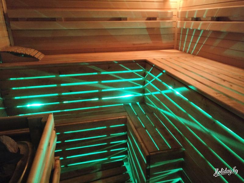 Усадебный дом оснащен необходимой мебелью и техникой. В агроусадьбе "Янтарная" есть сауна. Для приготовления шашлыка на территории имеется мангал.