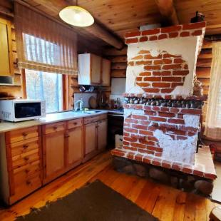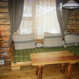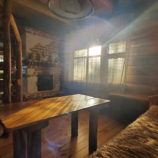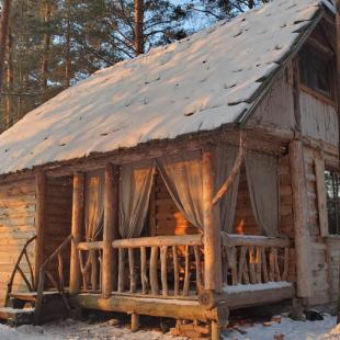 Второй домик рубленый и мансардного типа. Вместимость – 6 человек. На первом этаже кухня с бытовой техникой, санузел с душевой и унитазом, в мансарде две спальни, отделенные льняной перегородкой. Имеется интернет, телевидение. На небольшом крыльце стол и стулья – можно позавтракать прямо на свежем воздухе, наслаждаясь пением птиц и пейзажем. Перед домиком есть место для костра и шашлыков.