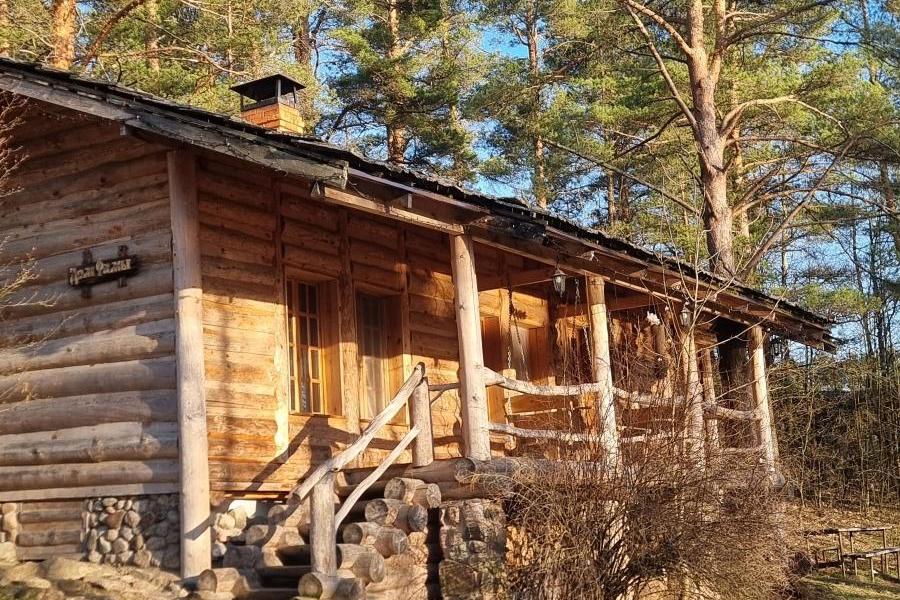 Дом в аренду №5 Фомы с потрясающим видом на озеро рассчитан на размещение до 6 человек. В доме есть кухня-гостиная с камином, две спальни, душевая с горячим/холодным водоснабжением и санузлом. Имеется диван, на котором возможно разместить еще несколько человек. В распоряжении спутниковое телевидение и интернет. Во дворике у дома есть стол и скамейка, где можно поиграть в настольные игры на природе. Крыльцо оборудовано столом и подвесными скамейками, куда стоит переместиться на трапезу, ведь оттуда открывается прекрасный вид на водную гладь.