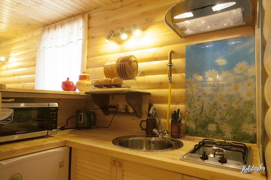 - мини-кухня, в которой есть все необходимое для приготовления еды (посуда, плита, холодильник, мойка);