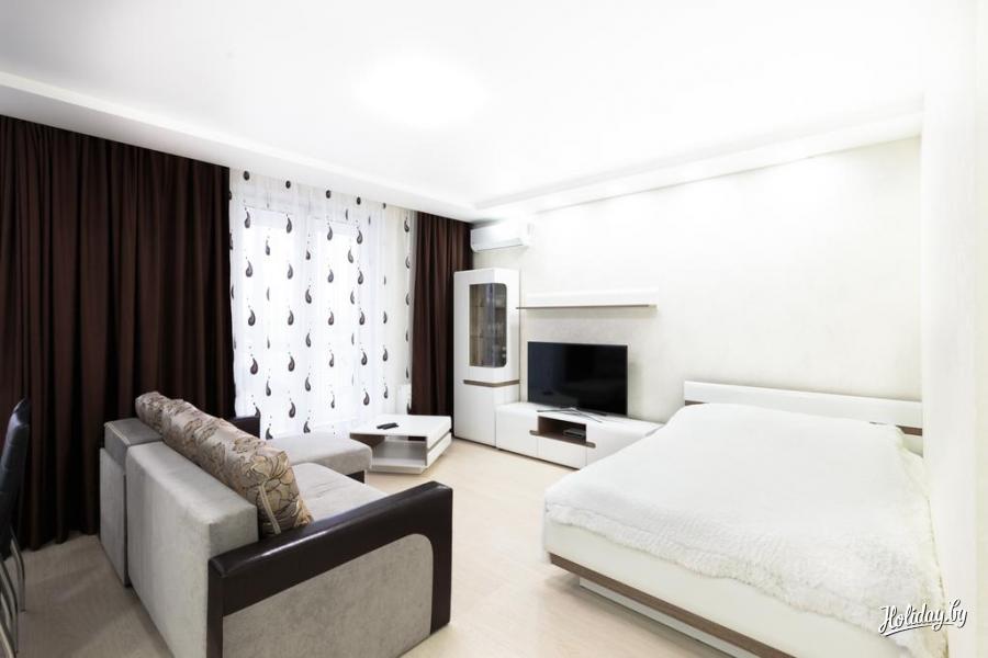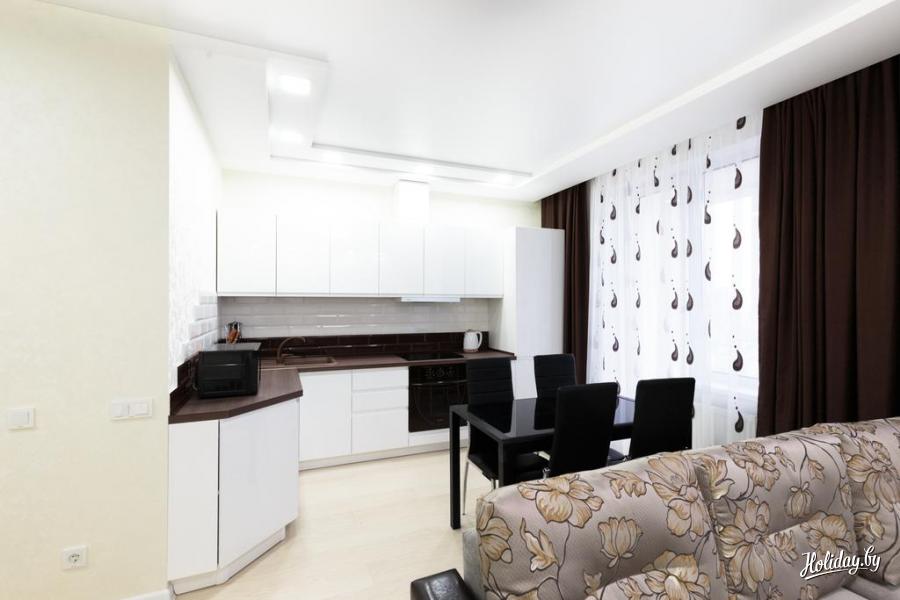 Апартаменты Apartment Minsk в Первомайском районе Минска. В однокомнатных апартаментах возможно размещение до 4-х гостей. В квартире имеется оборудованная кухня с посудомоечной машиной, плитой, холодильником и чайником. Спальные места представлены двуспальной кроватью и двуспальным раскладывающимся диваном. Ванная комната оснащена душевой кабиной, биде.