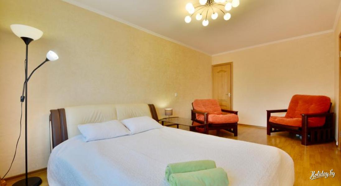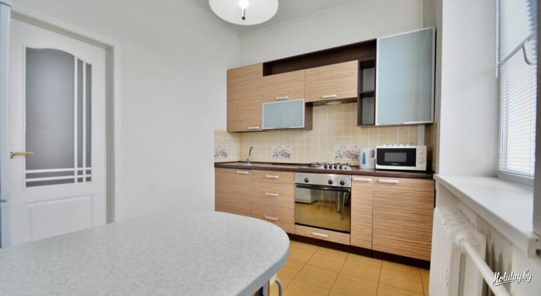Апартаменты Aparton в центре Минска для размещения 2-х человек. Это уютная квартира с спальней, кухней и ванной комнатой. Кухня оборудована необходимой техникой. В апартаментах работает бесплатный Wi-Fi, кабельное телевидение, DVD-плеер.