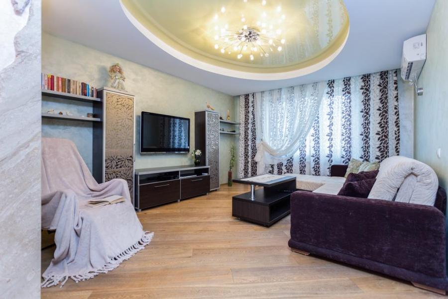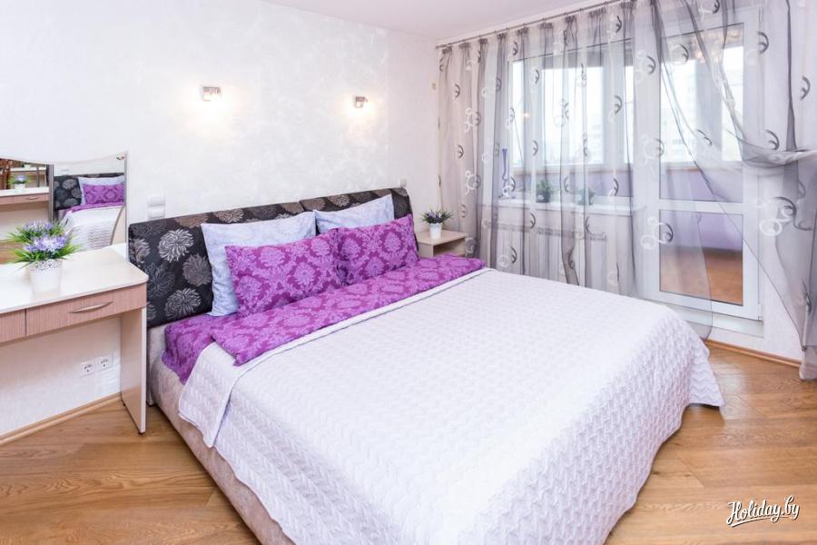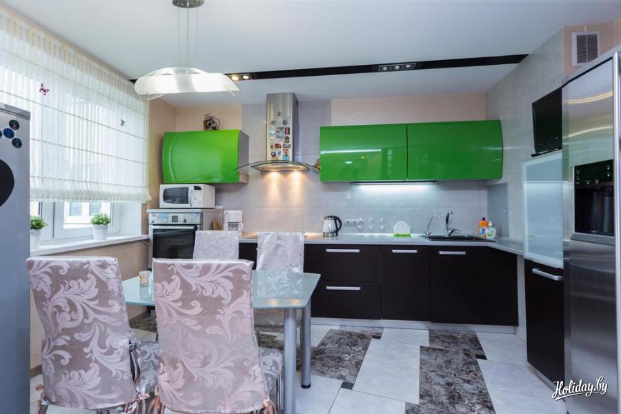 Апартаменты на Есенина в Московском районе Минска. Квартира предназначена для отдыха 5-ти гостей. Здесь есть две спальные комнаты и гостиная. Спальные места представлены большой двуспальной кроватью и двумя диванами-кроватями.