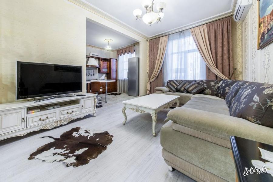 Апартаменты Hollow Minsk 3 расположены в Центральном районе Минска. Квартира предусмотрена для проживания 4-х гостей. Здесь есть спальная комната с двуспальной кроватью и гостиная с раскладывающимся диваном-кроватью.