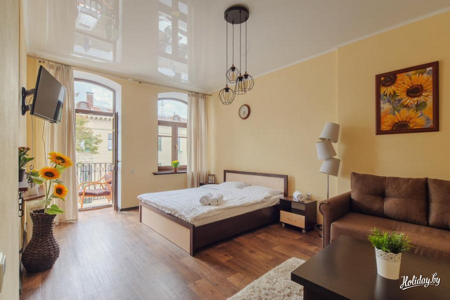 Апартаменты-студио располагают двуспальной кроватью и раскладывающимся диваном, оборудованной кухней и комфортной ванной комнатой. Здесь имеется балкон, духовка, телевизор с плоским экраном. Кухня оснащена микроволновой печью, чайником и холодильником.