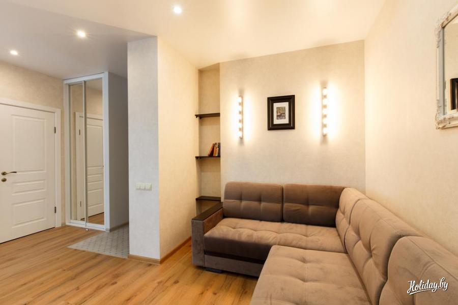 Апартаменты Minsk2Go расположены в Центральном районе Минска. Это место для отдыха компании до 4-х человек. В квартире есть спальня с большой кроватью, гостиная с диваном-кроватью и оборудованная кухня. Также имеется ванная комната с ванной.