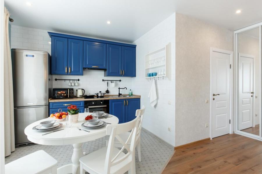 На кухне есть вся нужная техника: холодильник, плита, чайник. В апартаментах имеется балкон. Работает бесплатный Wi-Fi.
