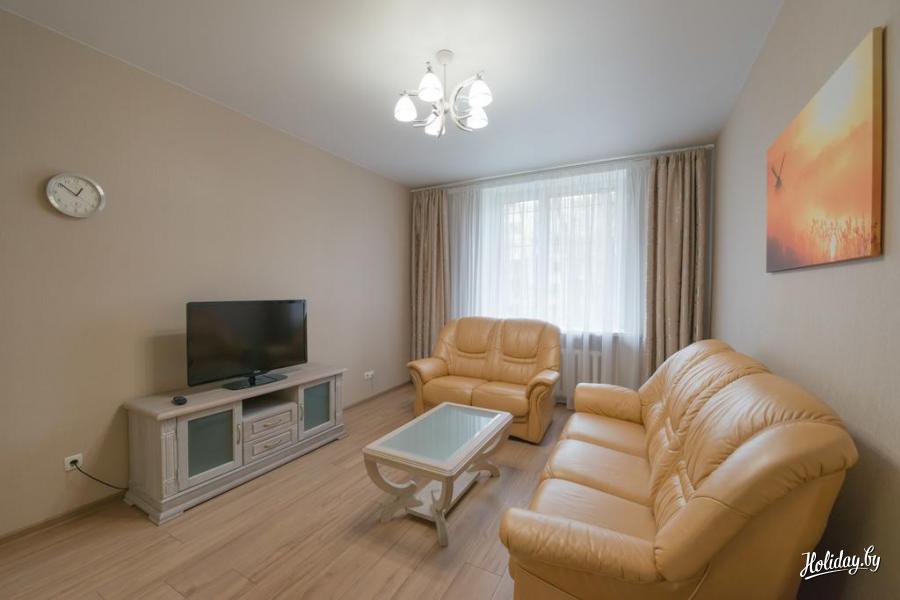 В квартире имеется спальня с двуспальной кроватью, гостиная с диваном-кроватью. Здесь есть ванная комната с ванной и необходимыми косметическими принадлежностями. На кухне имеется необходимая посуда и техника.