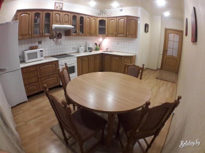Апартаменты Minsk Priemium Lux в Партизанском районе Минска. Это просторная квартира, в которой сможет разместиться компания из 12 человек. В апартаментах имеется 3 спальных комнаты с двумя двуспальными кроватями и двумя диван-кроватями. Также в апартаментах есть гостиная комната, оборудованная кухня, ванная комната. В апартаментах работает бесплатный Wi-Fi, есть телевизор с плоским экраном.