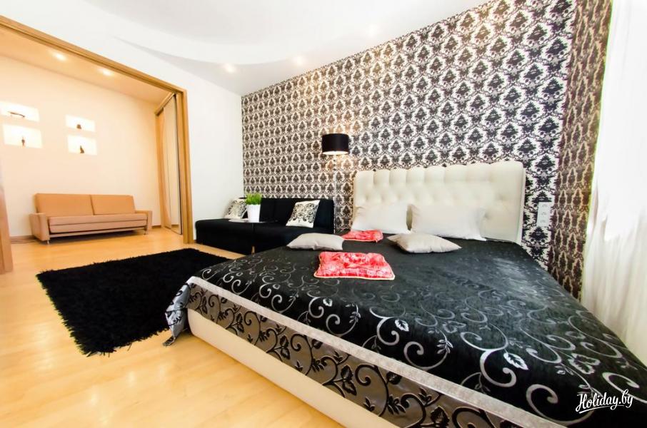 В апартаментах имеется двуспальная кровать и раскладывающийся двуспальный диван. Кухня оборудована необходимой техникой, здесь вы сможете готовить еду самостоятельно.