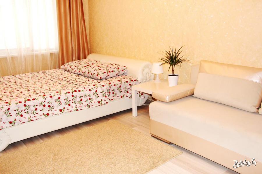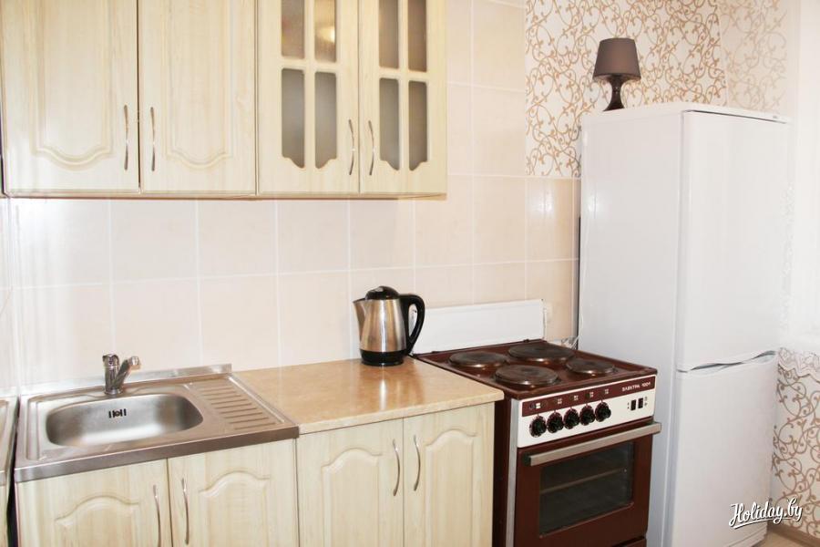 Апартаменты на Руссиянова в Первомайском районе Минска. Квартира подойдет для компании до 4-х гостей. В апартаментах есть собственная кухня с плитой, микроволновой печью, чайником и духовкой. В ванной комнате есть ванна, душ и фен.