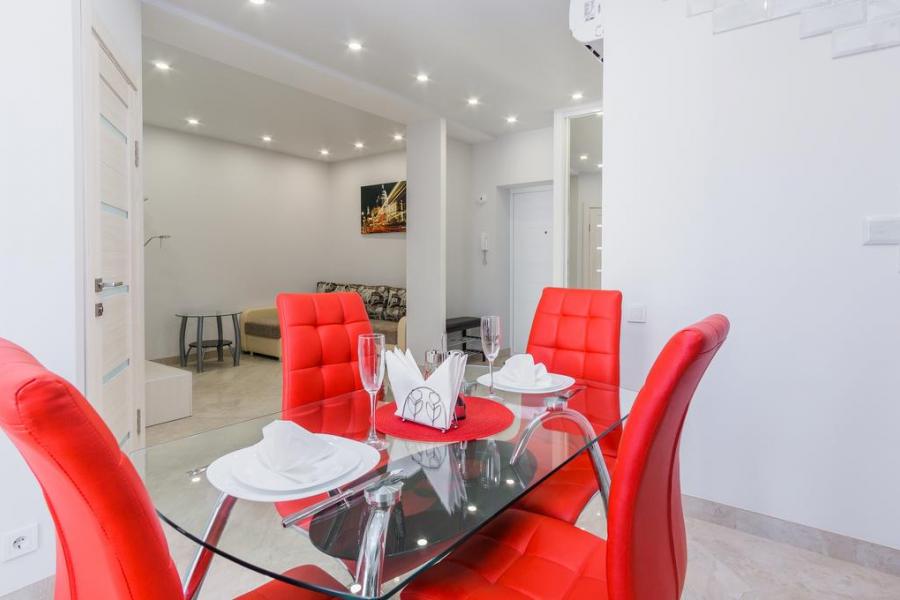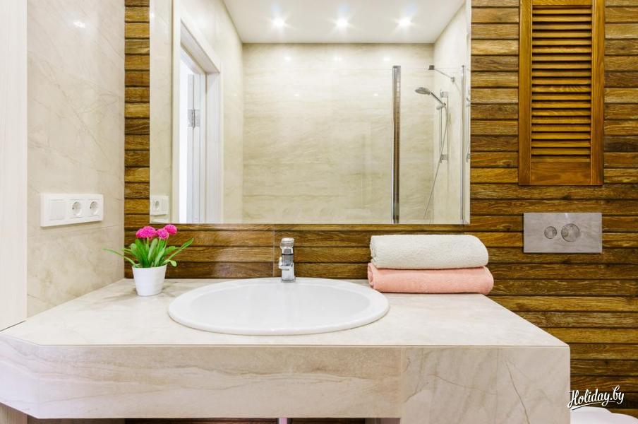Здесь готовы принять компанию из 4-х гостей. Здесь есть спальня, гостиная, кухня и ванная комната. В кухне имеется необходимая техника: духовка, микроволновая печь, посудомоечная машина. В ванной комнате имеется гидромассажная ванна.