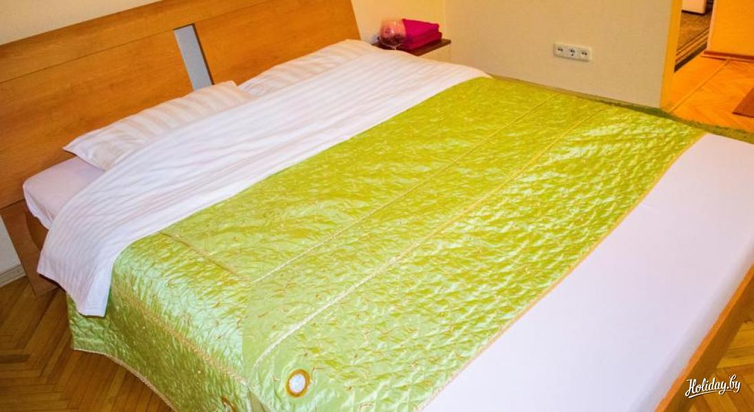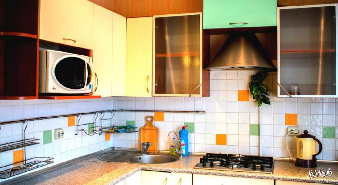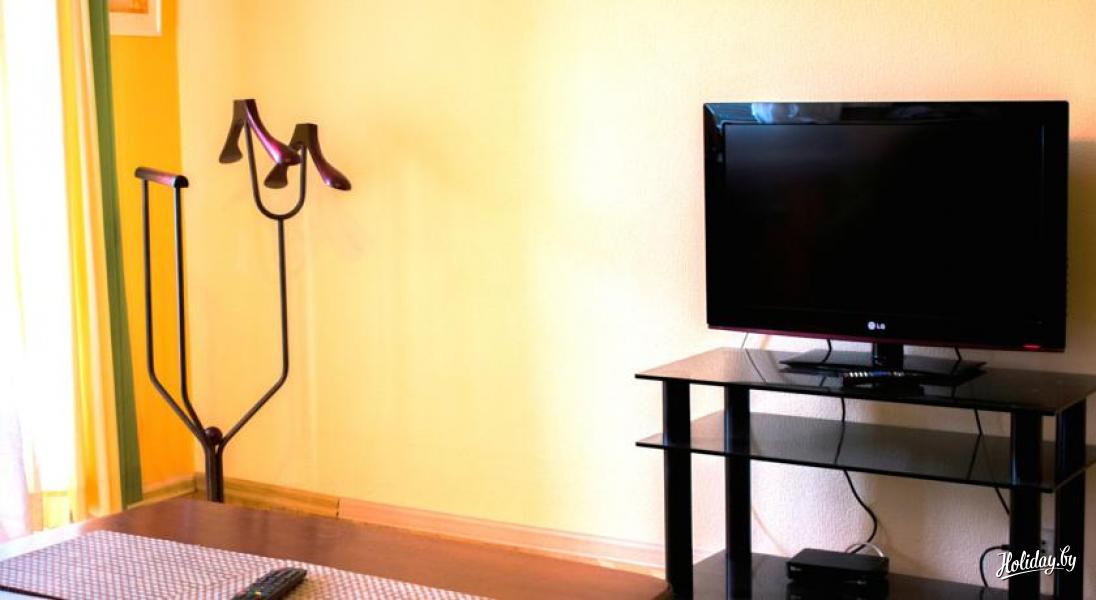 В апартаментах имеется спальня, гостиная, объединенная с кухней, ванная комната и балкон. Спальные места представлены двуспальной кроватью и двуспальным диваном-кроватью. Кухня оборудована духовкой, плитой, холодильником, чайником. В ванной есть гидромассажная ванна.