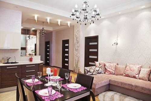 В апартаментах имеется 3 спальни с большими двуспальными кроватями и гостиная с раскладным диваном. На оборудованной кухне есть плита, холодильник, чайник. В апартаментах есть балкон, ванная комната, кондиционер.