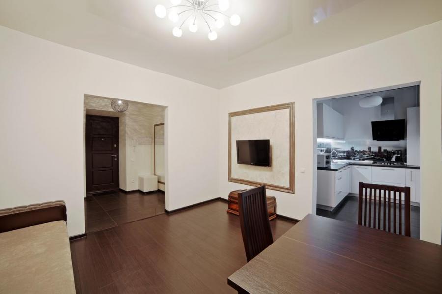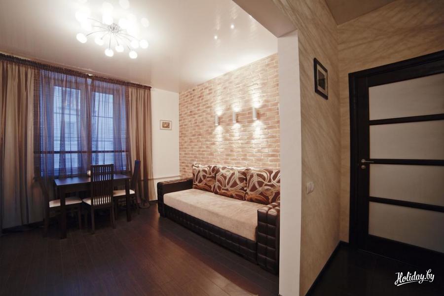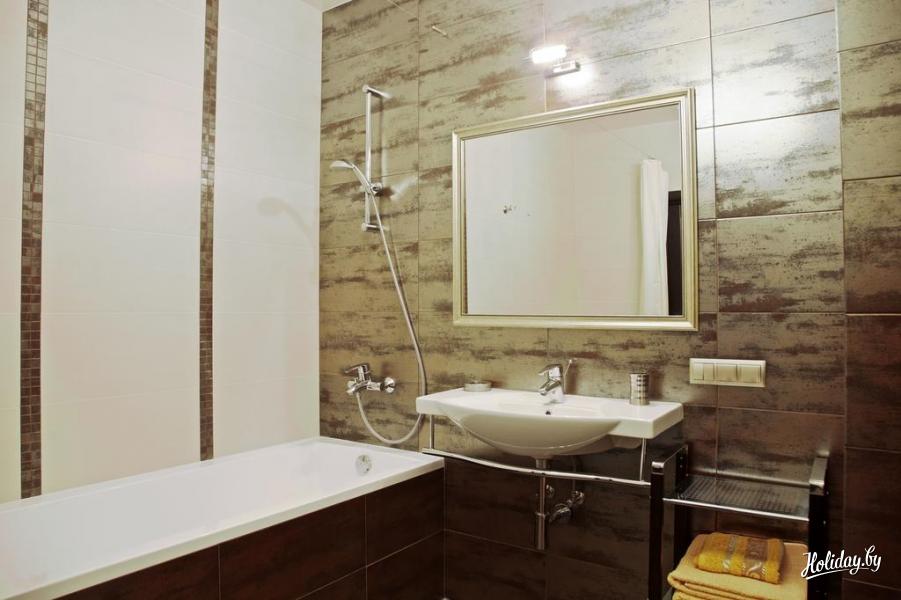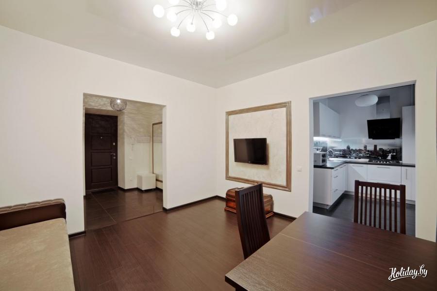 В квартире есть спальная комната с двуспальной кроватью и гостиная с диваном-кроватью. В ванной комнате есть фен и гигиенические принадлежности. На кухне имеется вся необходимая техника: чайник, холодильник, плита. В апартаментах есть балкон.