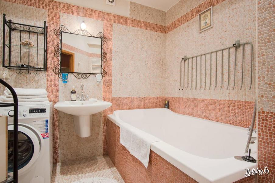В апартаментах есть кухня с духовкой, плитой и чайником. В ванной комнате есть ванна и стиральная машина. Гостям предоставляется постельное белье и туалетно-косметические принадлежности.