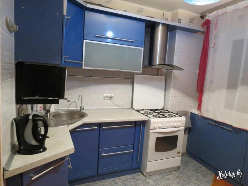 Апартаменты «У Парка Челюскинцев» в Первомайском районе Минска подойдут для проживания компании из 3-х гостей. В однокомнатной квартире имеется две кровати: двуспальная и односпальная. На кухне имеется необходимая техника. Санузел раздельный, в ванной комнате расположена ванна.