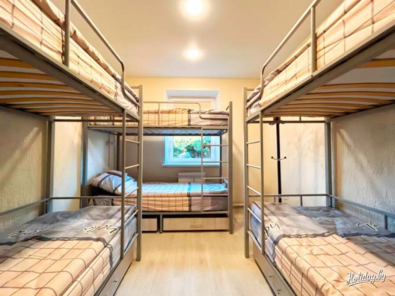 Уютный двухэтажный хостел в экологически чистом зелёном районе Минска. Количество спальных мест – 27, находящиеся в шести комнатах. Имеются трёхъярусные и двухъярусные кровати. Кухня со всем необходимым оборудованием: микроволновые печи, чайники, посуда. Общие душевые, санузлы, умывальники. Круглосуточный консьерж-сервис. Wi-Fi на всей территории. На кухне электрическая плита.
