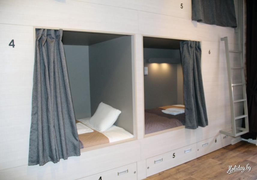 Хостел «Сenter» расположен в самом центре города Гродно и обустроенный по капсульному принципу. Здесь нет привычных коек у всех на виду – для каждого из 26 постояльцев подготовлен индивидуальный бокс, закрытый от посторонних глаз, оснащенный розеткой, светильником и выдвижным ящиком для личных вещей под ключ.