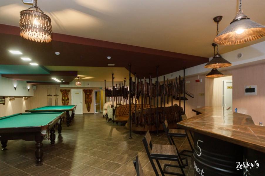 В гостинице можно снять уютные, комфортабельные номера по доступной цене. Кроме того, гостям не нужно беспокоиться об организации отдыха и питания. На территории расположены: ресторан, бар, магазин, бильярд, боулинг и сауна с бассейном.