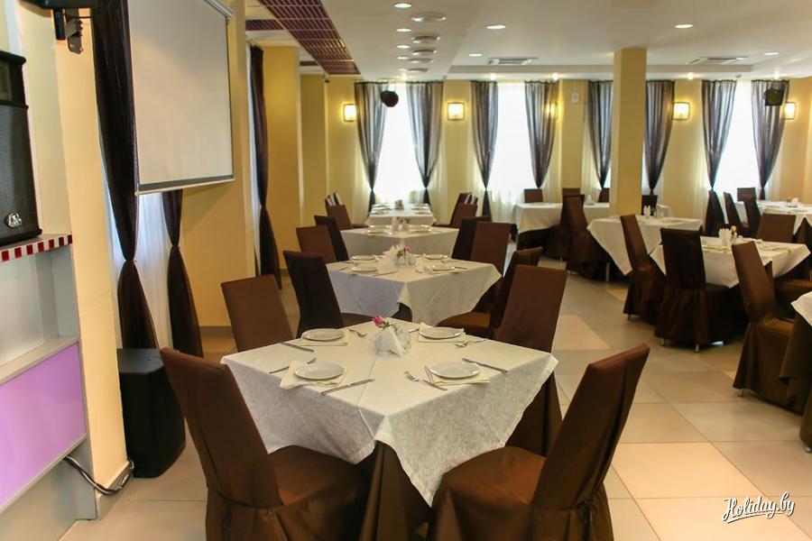 В гостиничном комплексе есть кафе, в котором готовят блюда европейской и белорусской кухни. Также здесь имеется бассейн, сауна, фитнес-центр, боулинг, бильярд.