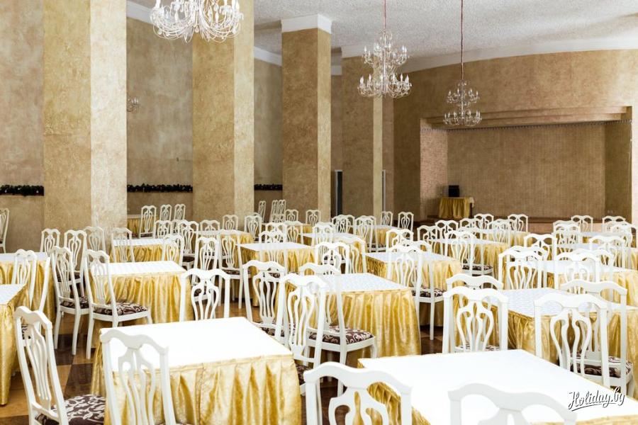 Отель «Горизонт» может полноценно обеспечить питанием не только своих гостей, но и жителей города. Ресторан гостиницы рассчитан на 180 мест. Для постояльцев по утрам работает система завтраков «шведский стол» с салатами, закусками, кашами, соками. Банкетный зал может вместить одновременно 30 гостей.